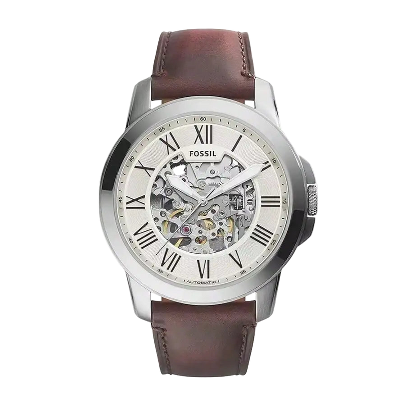 vastara - fossil man watches white dial and brown leather strap - casual unisex watch with stainless steel in white