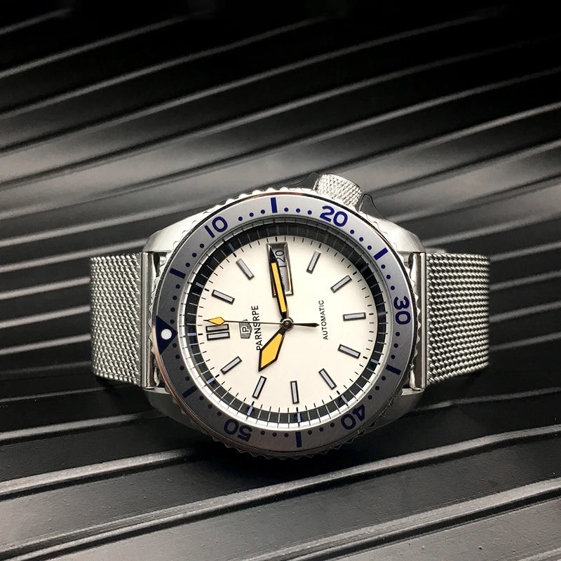 Robust automatic movement built to withstand the rigors of deep-water exploration. Self-winding mechanics powered by your adventures, no batteries required.